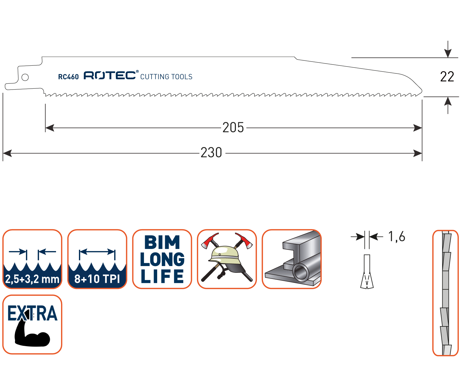 Dik staal (4-12mm), dikwandige, massieve buizen en profielen (<175mm).Ideaal voor buissnijders, voor reddingswerkzaamheden en sloopwerk. Krachtig, grof zagen