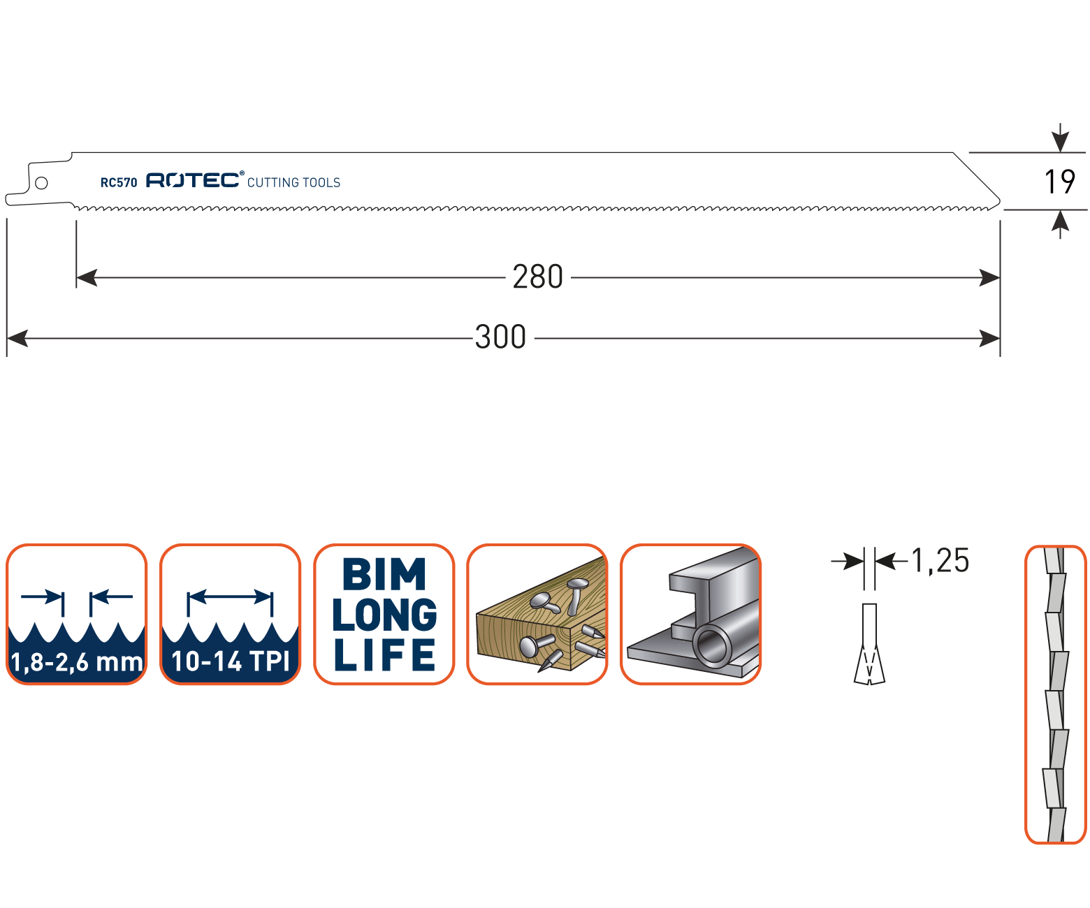 Middeldik tot dik staal (2-10mm), dunwandige en dikwandige buizen en profielen (<250mm).Ideaal voor sloopwerkzaamheden in metaal. Moeiteloos, fijn zagen.