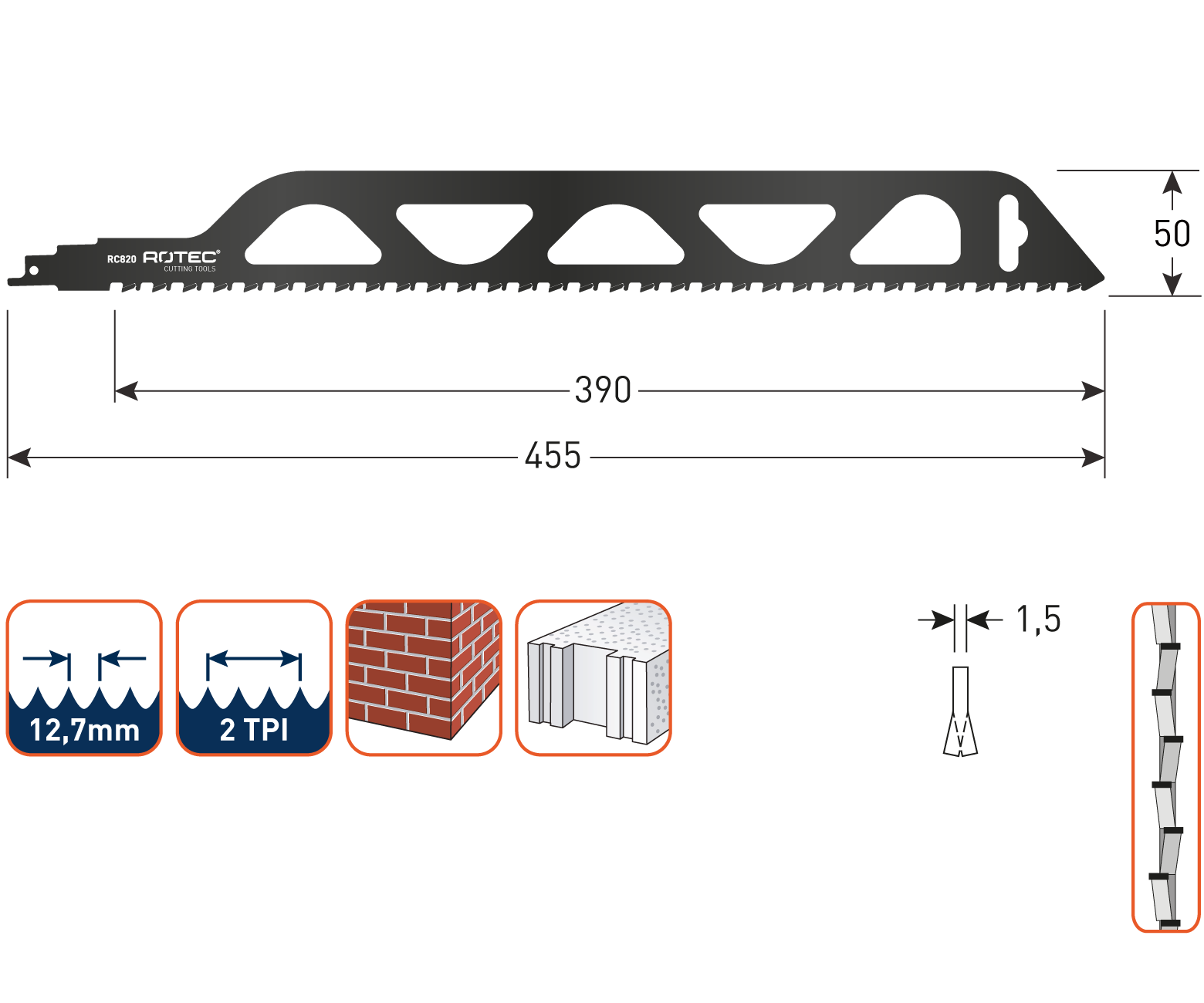 Voor grote bouwstenen tot een materiaaldikte van 370 mm.